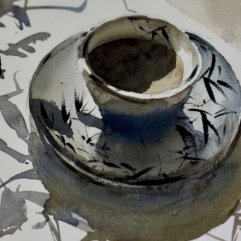 Pensar com Manchas é um curso online que propõe uma mudança de abordagem na aquarela: menos rigidez, mais fluidez; menos controle excessivo, mais escuta do processo.