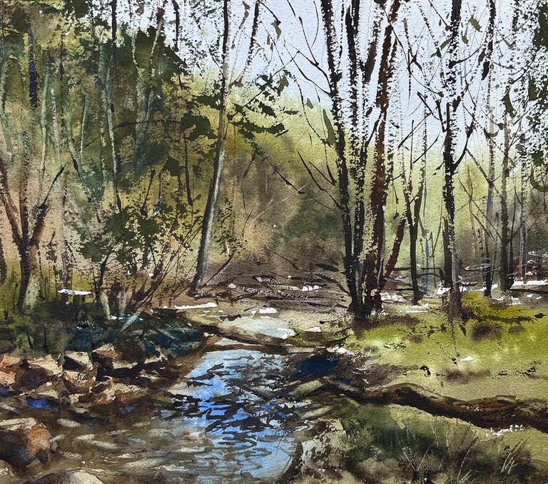 A água corre, a vegetação cresce livre, as cores se misturam com suavidade e movimento. Na aquarela, aprender a observar e interpretar esses elementos é o que dá vida à pintura.